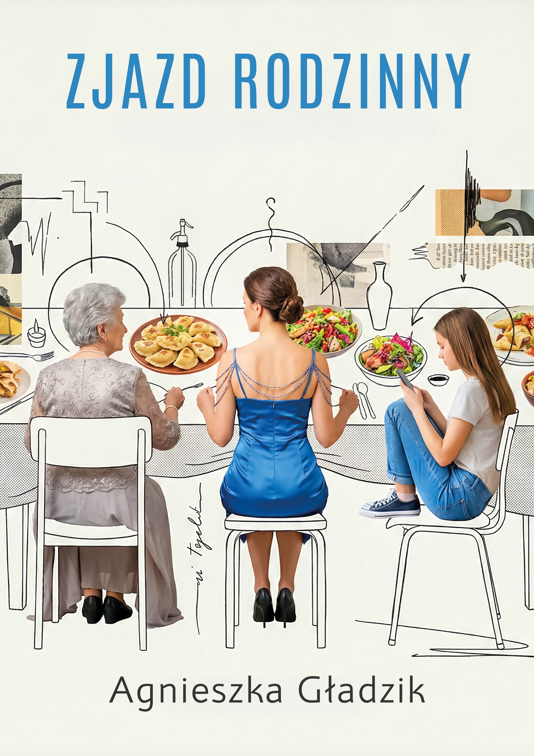 Z okazji osiemdziesiątych piątych urodzin cioci Waci planowany jest zjazd rodzinny. Gracjana, perfekcyjna gospodyni i orędowniczka zasad, chce, by wszystko było idealne. Długo nie zauważa, że w cieniu przygotowań dojrzewa dramat jej nastoletniej córki Julianny, która padła ofiarą cyberprzemocy. Kiedy do rezydencji w Mierzynie przybywają dwie kuzynki – Angela i „czarna owca” Elwira – napięcie rośnie… Każda z kobiet niesie ze sobą coś, o czym w rodzinie się nie mówi: urazy, wstyd i tajemnice. Tym samym spotkanie staje się konfrontacją nie tylko pokoleń, lecz także życiowych postaw. Pozory pękają jak szklanka w zmywarce i dochodzi do wielkiej eksplozji. Zjazd rodzinny Agnieszki Gładzik to przenikliwa, temperamentna opowieść o współczesnych kobietach rozdartych między potrzebą bliskości a pragnieniem wolności. O tym, że aby wyjść z narzuconych przez rodzinę ról, trzeba czasem przewrócić stół. Smaku całej historii dodają sceny przyrządzania dań kuchni z całego świata oraz indeks kulinarny egzotycznych potraw.