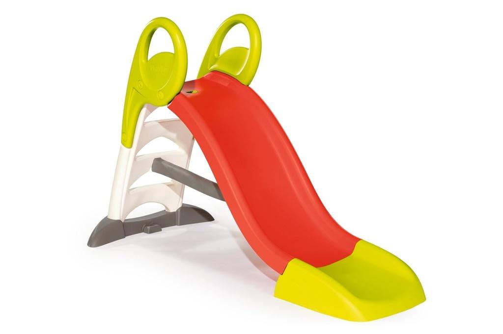 Posiada duże i ergonomiczne obręcze zapewniające bezpieczne wejście na zjeżdżalnię i antypoślizgową drabinkę. Możliwość podłączenia węża ogrodowego w celu zraszania ślizgu. Powłoka ANTI-UV chroniąca przed słońcem. Wymiary zjeżdżalni: 159 x 68 x 100 cm, 2+