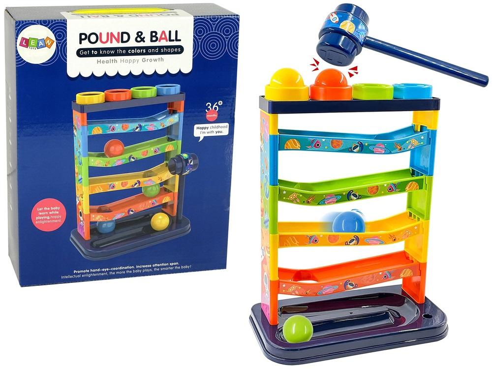 Kolorowa Zjeżdżalnia Piłeczek Grzechotka Edukacyjna Dzieci od najmłodszych lat każdego dnia odkrywają świat! Chcą go poznawać i się uczyć. W związku z tym ich zabawki powinny być skonstruowane w taki sposób, aby wzbudzać ich zainteresowanie, jednocześnie ucząc właściwości ich otoczenia. Na czym polega zabawa? Należy włożyć piłeczki do otworu znajdującego się w pierwszej platformie, a następnie pozwolić im swobodnie pokonywać pięterka i opadać w dół. Aby kulka wpadła do środka, należy użyć młotka, ćwicząc przy tym ocenę odległości, precyzję i koordynację oko- ręka. Każdy otwór ma inny kolor, tak jak piłeczki, można spróbować dopasowywać odpowiednie kolory, co będzie ćwiczyć u malucha jego spostrzegawczość i funkcje wzroku. Piłeczki podczas poruszania wydają dźwięki jak grzechotki, co zwróci uwagę malucha. Zabawa, która wspomaga rozwój Twojego dziecka. Wszelkie elementy wykonane są z certyfikowanego i atestowanego plastiku, który jest gwarancją bezpieczeństwa płynącego z zabawy. Sorter odznacza się bardzo opływowymi, delikatnymi kształtami, które będą niegroźne dla rączek malca. Funkcje bloku: - zjeżdżalnia z piłeczkami - 4 piłeczki grzechotki - młotek Wymiary zjeżdżalni: 28 cm x 16 cm x 35 cm Wymiary opakowania: 30 cm x 25 cm x 9 cm Zabawka przeznaczona dla dzieci powyżej 36 miesiąca życia. Zgodna z normą EN71.