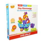 Złap Równowagę to drewniana zabawka, która rozwija sprawność rączek, koordynację wzrokowo-ruchową i wyobraźnię przestrzenną. Zabawka rozwija także logiczne myślenie i rozwiązywanie problemów. Jest to gra zręcznościowa dla 1-4 osób. Można bawić się nią samodzielnie lub w gronie przyjaciół czy rodziny. Spróbuj ułożyć zwierzątka na łódce tak, aby zmieściło się ich jak najwięcej. Można utrudnić sobie zabawę, rzucając kostką i stawiając na łódce zwierzę o odpowiednim kolorze. Wiek: od 3 do 10 lat