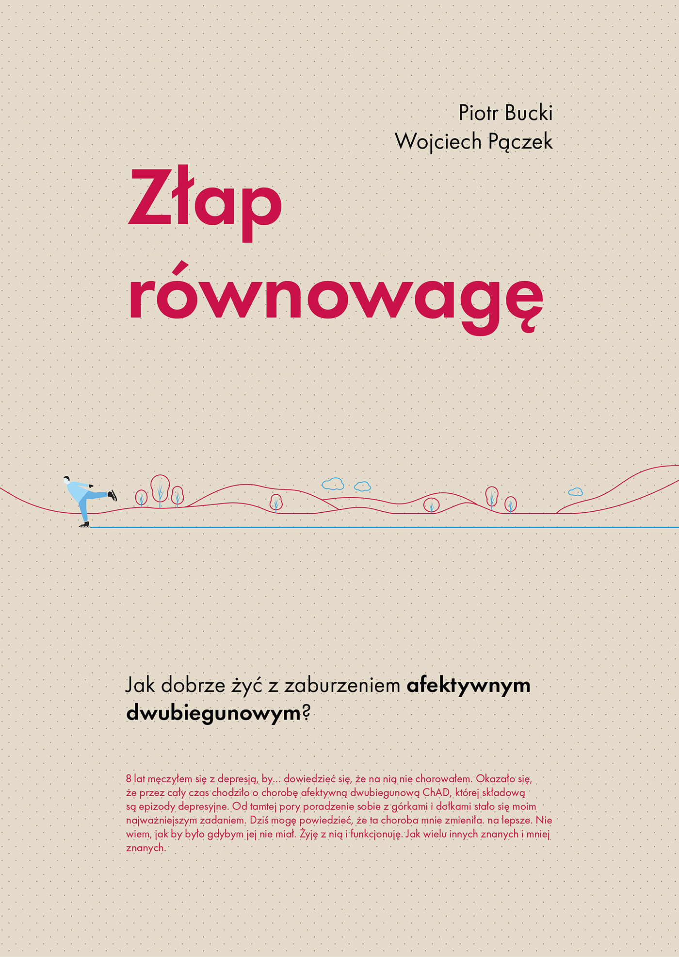 Choroba afektywna dwubiegunowa to druga najczęstsza przyczyna niezdolności do pracy z powodów psychiatrycznych. Istnieje więc spora szansa, że albo jesteś w grupie ryzyka, albo znasz kogoś, kto w niej jest. Ale spokojnie. To nie wyrok. I może zabrzmi to dziwnie, ale w pewnym stopniu to błogosławieństwo. Jeśli nauczysz się z nią dobrze żyć, to może się okazać, że jesteś lepszą wersją siebie. Taką, która potrafi dobrze wykorzystać jeden i drugi biegun. Po angielsku ta choroba nazywa się bipolar disorder. Ja myślę o niej w kategorii bipolar in order. To gra słów. Disorder oznacza zaburzenie. In order oznacza w porządku. I taka jest moja rola. Pokazać ci, twoim znajomym, przyjaciołom, że może być i będzie w porządku. Zdecydowałem się zacząć pisać książkę, którą mogę polecić wszystkim zainteresowanym tą chorobą. Nie chciałem jednak by to była książka pisana z perspektywy li tylko pacjenta. Do współpracy zaprosiłem psychiatrę-terapeutę. Tak, by moje spojrzenie uzupełnić o głos eksperta. To książka dla tych, którzy nie chcą czuć się sami, dla ich rodzin, dla znajomych. Ja dałem radę. Ty też dasz. Piotr Bucki