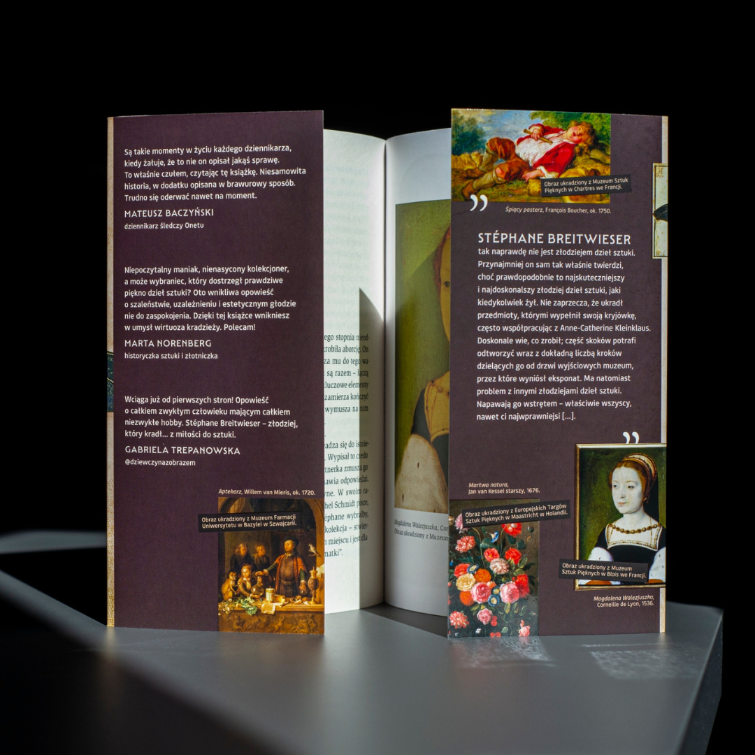 W Muzeum Sztuk Pięknych i Archeologii w Besançon jest pora lunchu. Niektórzy strażnicy schodzą na przerwę. Pozostałych mija para pięknych dwudziestolatków. Kilka godzin później na ścianie poddasza domu w Miluzie wieszają „Nietoperza” Albrechta Dürera. To nie genialne fałszerstwo, ale łup genialnego złodzieja. Podobnie jak ponad 300 innych artefaktów zgromadzonych przez Stéphane’a Breitwiesera.