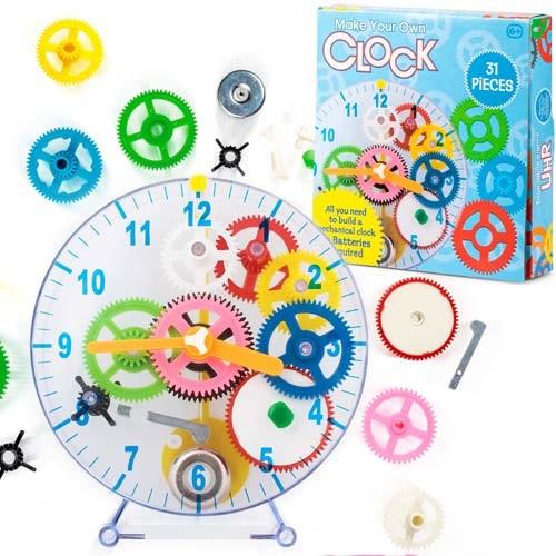 Stwórz swój własny zegar. Kolorowe tryby są montowane w przezroczystej plastikowej obudowie, tworząc fantastyczny zegar mechaniczny. Dzięki łatwym do zrozumienia, ilustrowanym instrukcjom zestaw jest odpowiedni dla dzieci w wieku od sześciu lat, tworząc zabawny i edukacyjny projekt. W komplecie z wahadłem i błyszczącym dzwonkiem, gotowy zegar zajmie honorowe miejsce w sypialni lub pokoju zabaw każdego dziecka.