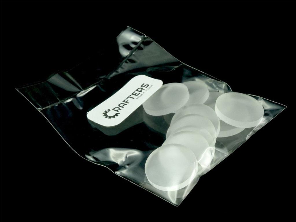Żetony wykonane ze szkła akrylowego satynowego, o grubości 3 mm, średnica żetonu wynosi 22 mm. W opakowaniu jest 10 żetonów. Użyteczne w grach bitewnych, RPG, grach Print & Play, w prototypach gier planszowych, jako zamienniki elementów oraz przy wprowadzaniu własnych modyfikacji zasad do gier.