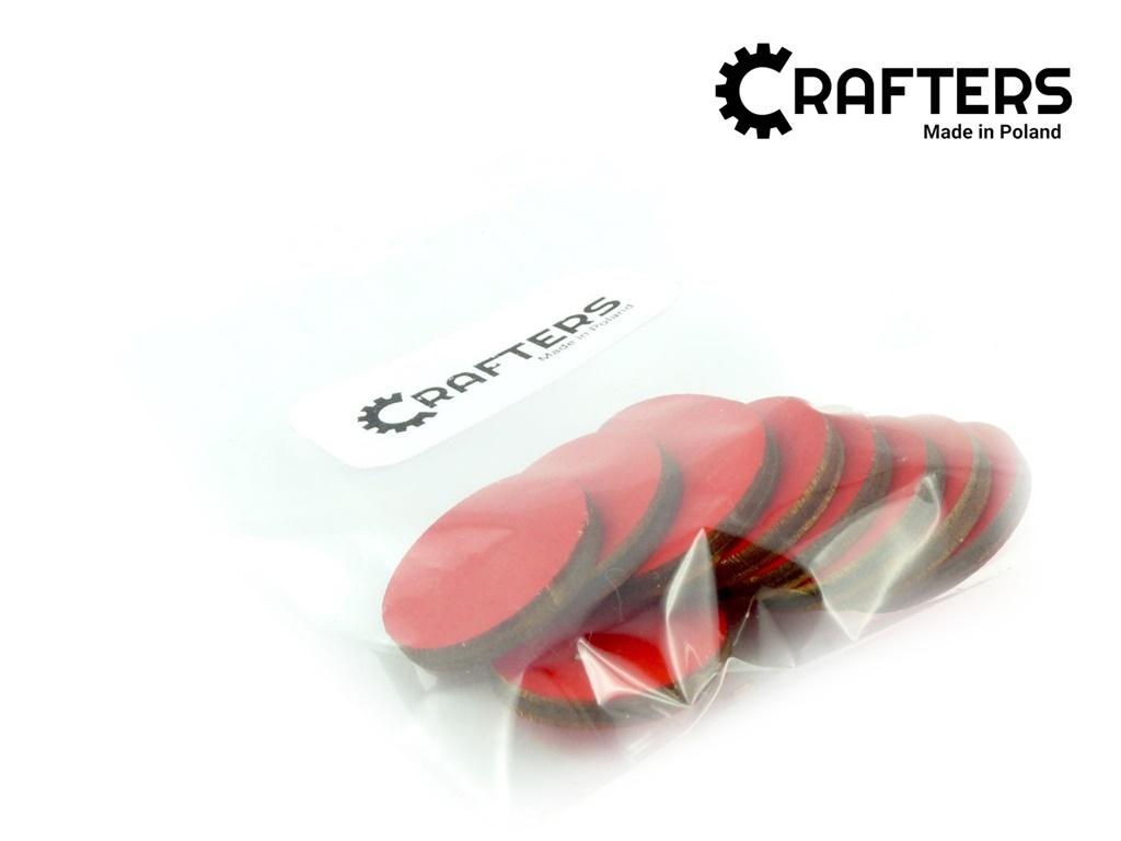 Żetony wykonane ze sklejki brzozowej, barwione, o grubości 3 mm, średnica żetonu wynosi 22 mm. W opakowaniu jest 10 żetonów. Użyteczne w grach bitewnych, RPG, grach Print & Play, w prototypach gier planszowych, jako zamienniki elementów oraz przy wprowadzaniu własnych modyfikacji zasad do gier.