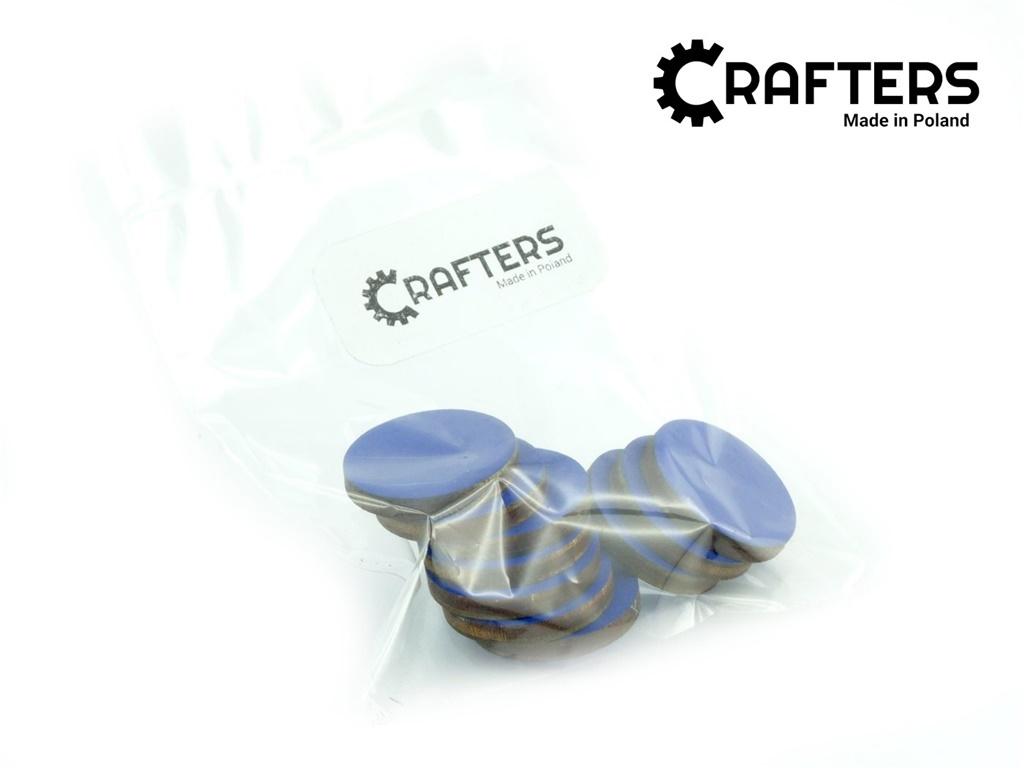 Żetony wykonane ze sklejki brzozowej, barwione, o grubości 3 mm, średnica żetonu wynosi 22 mm. W opakowaniu jest 10 żetonów. Użyteczne w grach bitewnych, RPG, grach Print & Play, w prototypach gier planszowych, jako zamienniki elementów oraz przy wprowadzaniu własnych modyfikacji zasad do gier.