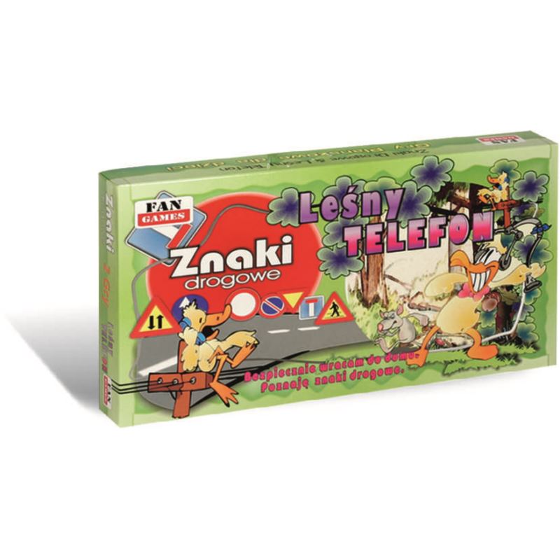 Znaki drogowe Od wczesnych lat uczymy dzieci bezpieczeństwa na drodze. Utrwalamy zasady ruchu drogowego i znaki drogowe. Mały początek nauki w zabawie - podróży przez las. Leśny Telefon Połącz się przez Leśny Telefon. Celem gry jest przejście przez Start do Budki Meta, wykonując zadania zapisane w instrukcji. Zawartość pudełka: plansza 4 pionki kostka instrukcja Liczba graczy 2-4 Wiek 5+