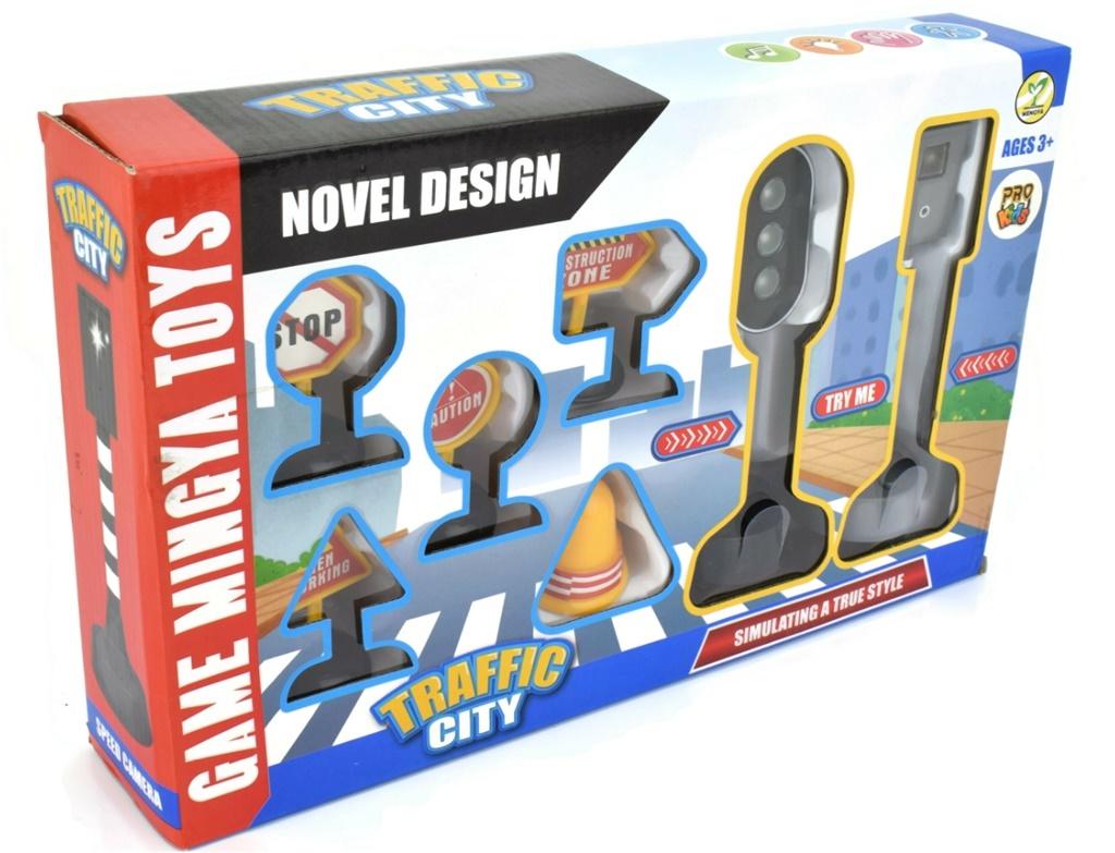 Zestaw ze znakami drogowymi na baterie ze światłem i dźwiękiem. Super dodatek do garaży i mat z ulicami. Teraz dziecko może poprzez zabawę poznawać zasady ruchu drogowego, aby bezpiecznie poruszać się po mieście.