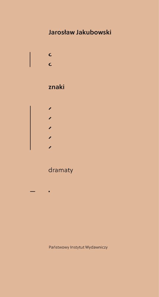 Zbiór ośmiu dramatów Jarosława Jakubowskiego, poety, prozaika, dramatopisarza i krytyka literackiego. Spośród zamieszczonych w tomie "Znaki" dramatów publikacji książkowych doczekały się: Generał, Znaki, Witaj Barabaszu i H, w „żywym teatrze” wystawiono Generała, w Teatrze Telewizji: Generała i Znaki, jako słuchowiska zrealizowano: Generała, Witaj Barabaszu i H. Z kolei utwór Urodziny został zarejestrowany na wideo jako czytanie performatywne. Dramaty: Równina, Moja Romy i Hermaszewski nie były dotąd publikowane i wystawiane.