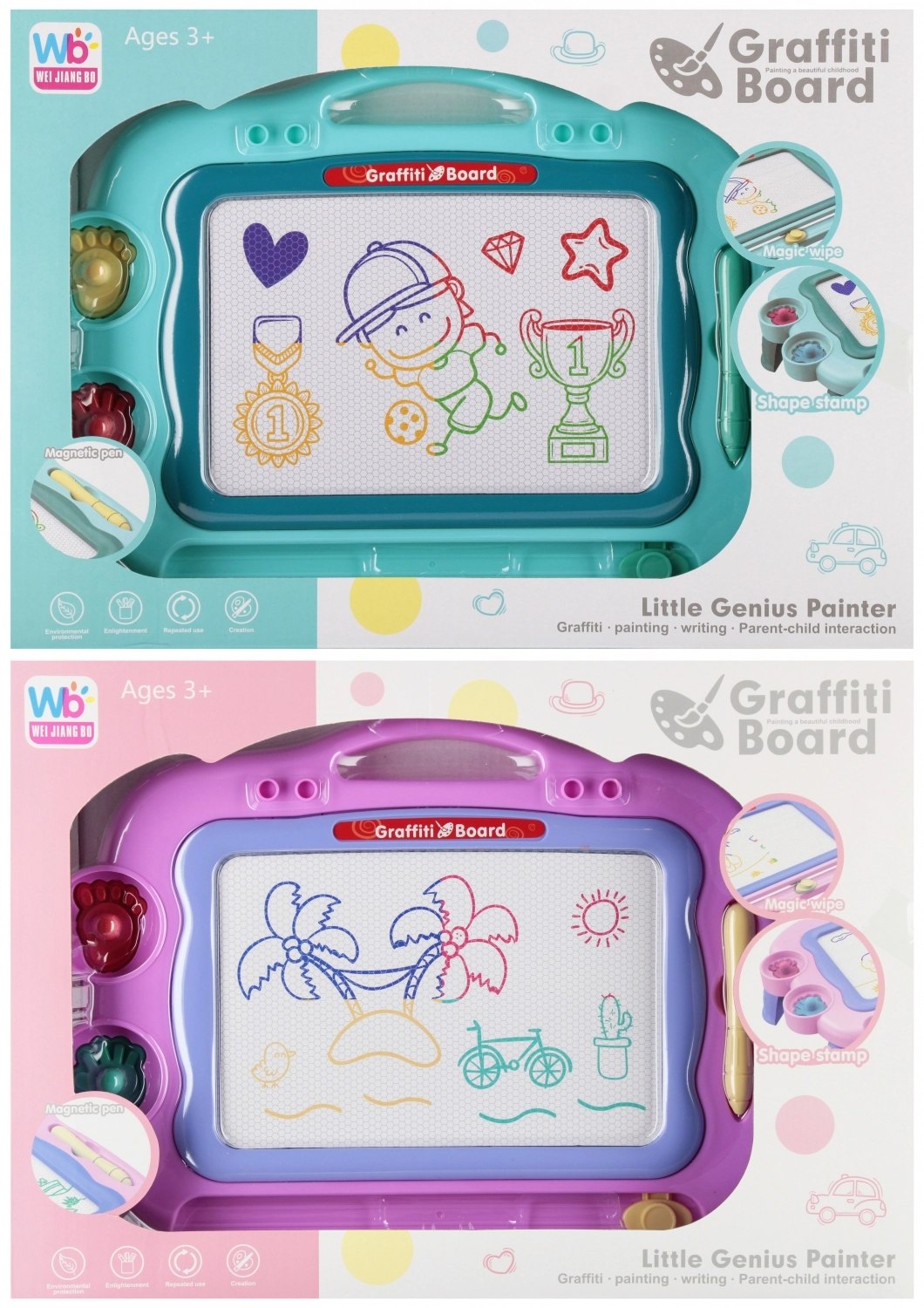 Dzięki dołączonemu magnetycznemu rysikowi można tworzyć rysunki i napisy, a suwakiem z łatwością wszystko zmazać i zacząć od nowa.