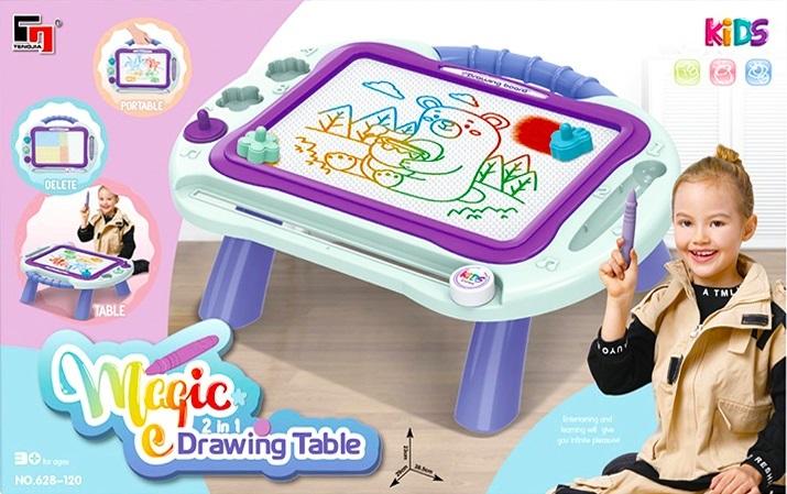 Zalety produktu: w zależności w której jego części powstanie rysunek, będzie on w jednym z czterech kolorów, rozwija kreatywność dziecka, pobudza wyobraźnię. Kolorowy Znikopis Stół to najlepszy pomysł na naukę rysowania Twojego dziecka. Nie musisz się przejmować czy linia będzie prosta czy krzywa, jeżeli coś nie wyjdzie, łatwo zmażesz to jednym ruchem. Ten Znikopis posiada specjalną powłokę! Znikopis Stolik MEGA CREATIVE z akcesoriami to być może powierzchnia, na której powstanie pierwsze dzieło sztuki Twojej pociechy! Znikopis Stolik magnetyczny do zabawy i nauki. Pobudza wyobraźnie, kreatywność oraz rozwój każdego dziecka, to wspaniała zabawka, która urozmaici wspólnie spędzony czas z najbliższymi. Dzięki niewielkim wymiarom, może służyć do zabawy w domu czy ogrodzie. Zawartość zestawu: stolik znikopis magnetyczny,3x pieczątki, magiczny pisak. Całość wykonana z plastiku. Wymiary/waga/baterie: wymiary produktu w opakowaniu (dł. x wys. x gł.) [cm] 48x30x5, waga produktu w opakowaniu (kg.) 0,75. Wymiary produktu ( dł. x wys. x gł.) [cm] 38x18x28, waga produktu (kg.) 0,55 kg. Przeznaczony dla dzieci w wieku 3+.