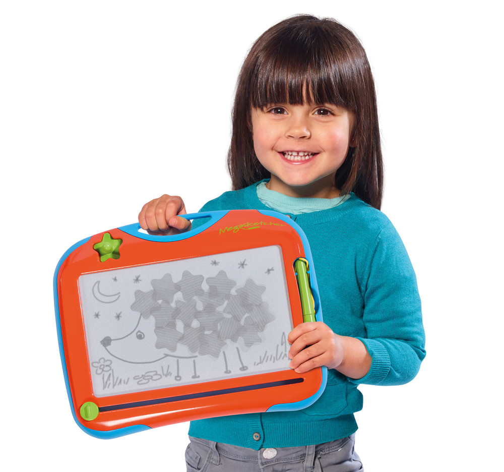Megasketcher to magnetyczna tablica, na której Twoje dziecko będzie mogło wiele razy rysować i pisać.