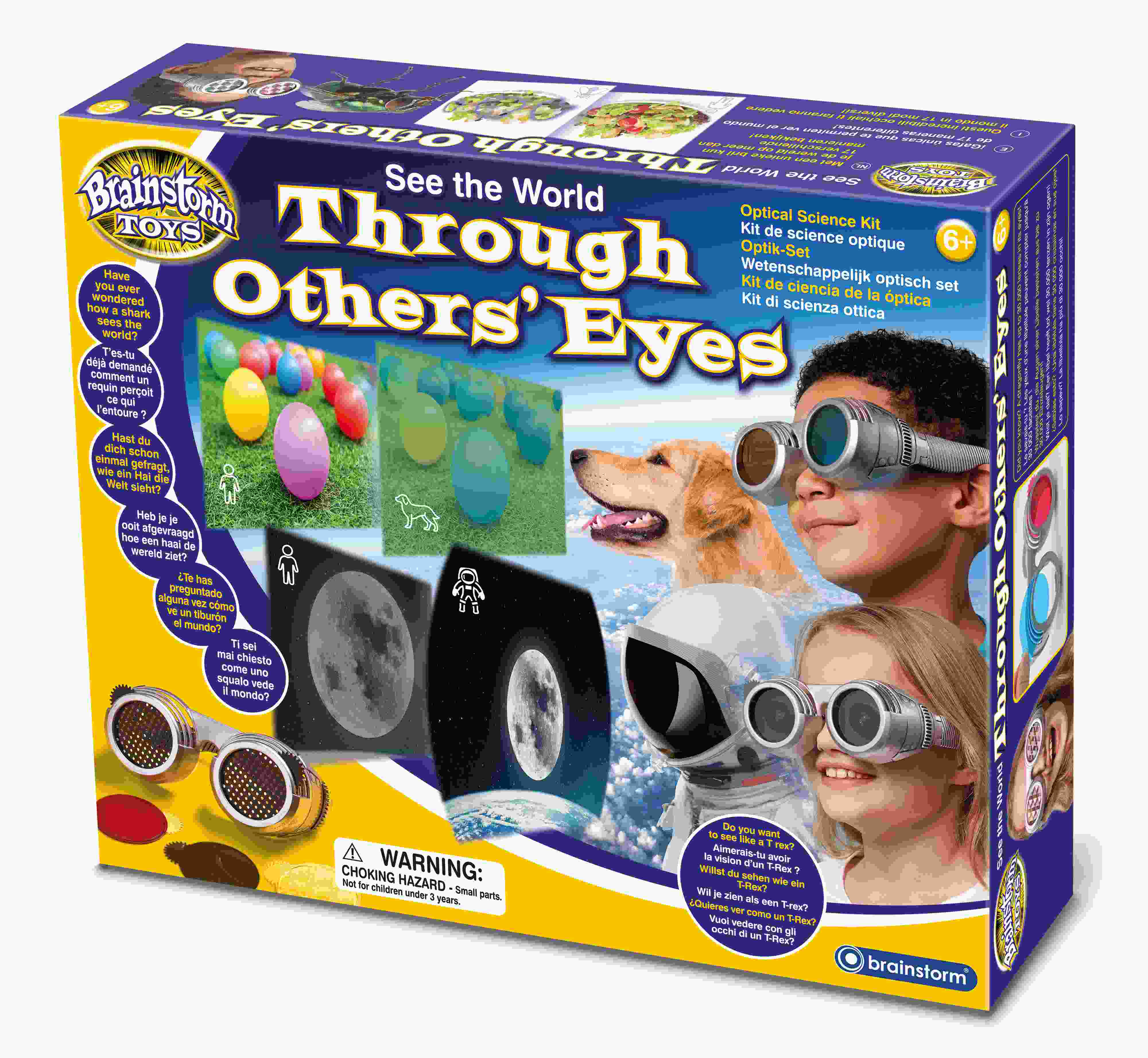 Czy zastanawiałeś się kiedyś, jak rekin widzi świat lub jak mątwa widzi swój podwodny świat?Po prostu załóż te fajne okulary, a zobaczysz świat oczami innych! 22 wymienne soczewki pozwalają widzieć na ponad 17 różnych sposobów lub stwórz własny! Obiektywy obejmują szerokokątne, kolorowe, spolaryzowane, dzielone widzenie, fasetowane, widmowe i inne.