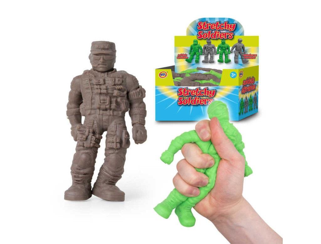 Rozciągliwy żołnierz z piaskiem w środku. Dostępny w dwóch kolorach zielonym lub brązowym.