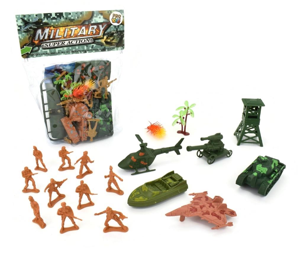 Idealny zestaw, aby stworzyć własne pole bitwy w zaciszu swojego pokoju! Twórz strategie, obmyślaj, jak ustawić swoich żołnierzy, aby pokonać w sprytny sposób swojego przeciwnika. Plastikowe żołnierze to idealna zabawka dla dużych jak i małych chłopców oraz dziewczynek dla których świat wojska, misji i tajnych zadań jest idealnym miejscem, gdzie można rozwijać swoje umiejętności logicznego myślenia, przewidywania i budowania strategii. Każdy z nas jest w środku małym żołnierzem!