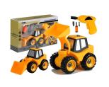 Żółta Koparka Do Rozkręcania + Wkrętarka Zestaw do rozkręcania, który składa się z koparki oraz narzędzi. Zabawka ta będzie rewelacyjnym prezentem dla małego majsterkowicza, który pasjonuje się różnego rodzaju pojazdami. Połączenie klasycznej zabawy samochodzikami z możliwością własnoręcznego skręcania i rozkręcania poszczególnych elementów uczyni zabawkę doskonałą frajdą na długie godziny. Znajdujące się w zestawie narzędzia, czyli śrubokręt wraz z wymiennymi końcówkami oraz wiertarka umożliwi dziecku odkręcenie między innymi kół, a nawet kabiny. Kolorystyka zabawki nawiązuje do pojazdów budowlanych, rewelacyjnie ze sobą kontrastując. Koparka posiada zaciemnione szyby i liczne detale, które tylko nadają im jeszcze ciekawszego charakteru. Możliwość demontażu sprawi, że rozwinie się jego wyobraźnia i kreatywność, natomiast zabawa z narzędziami wpłynie na jego zdolności manualne i koordynację. Zabawka Przeznaczona dla dzieci powyżej 3. roku życia. Wiertarka zasilana dwoma bateriami "AA" - brak w zestawie. Wymiary koparki: 15 cm x 8 cm x 10 cm Wymiary wiertarki: 11 cm x 10 cm Wymiary śrubokrętu: 11 cm x 2 cm Wymiary opakowania: 35 cm x 21 cm x 9 cm