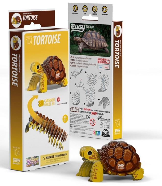 Eugy zaprojektowane w Nowej Zelandii są wykonane z przyjaznego dla środowiska kartonu pochodzącego z recyklingu i farby na bazie ryżu. Zestaw zawiera 34 ponumerowane elementy układanki, oczka, nietoksyczny klej oraz instrukcję do zbudowania figurki długowiecznego żółwia lądowego. Zbierz całą serię zwierząt, ptaków, dinozaurów i wiele innych. Dla dzieci w wieku 6 lat +.