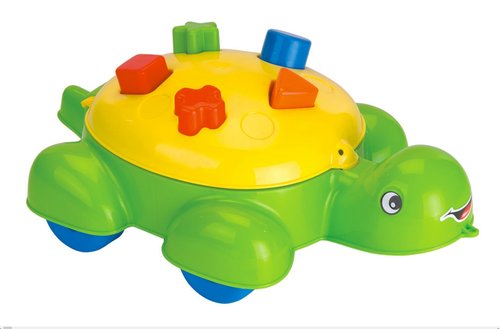 Sorter w kształcie żółwia edukacyjnego. Posiada 10 elementów w różnych kolorach i kształtach. Żółw jest wyposażony w 4 kółka, i zaczep na sznurek z przodu. Dziecko może ciągnąć zabawkę za sobą. Bezpieczna i edukacyjna zabawka dla dzieci powyżej 1 roku życia