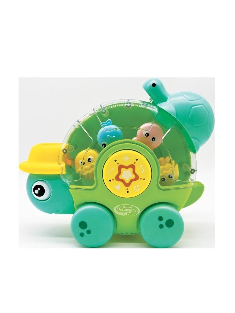 Kąpiel i zabawa to super sprawa! A gdyby połączyć jedno z drugim? Wesoły żółwik i jego zakręcona ekipa rozweselą maluszka, umilając przy tym czas kąpieli! Zabawka wyposażona została w aż 3 przyssawki, dzięki czemu bez trudu można ją przymocować do ścianki wanny. W zabawce ukryły się niespodzianki. Nabierz wody do kubeczka w kształcie mini żółwika, a następnie wlej ją do kapelusza na głowie dużego żółwia, aby zakręcił oczami! Wlanie wody w otwór na grzbiecie żółwia, wprawi w ruch karuzelkę. Gwiazdka znajdująca się na środku karuzeli jest piszczałką naciskaj ją, a wyda wesoły odgłos. To jeszcze nie wszystko! Żółwik zmieni się raz-dwa z wodnego w lądowego, gdy tylko wyjmiesz go z kąpieli, dobrze osuszysz i postawisz na podłodze. Za sprawą swobodnego ruchu kół, gdy go popchniesz, posłusznie pojedzie przed siebie.