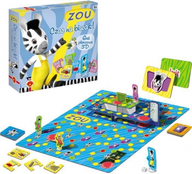 Zou, Elzee, Zinnia i Zak otrzymali cudowną propozycję. Tata Zou obiecał, że zabierze ich na biwak. Ponieważ dorośli są zajęci pracą, dzieci muszą samodzielnie się spakować. Każde z nich musi zabrać na wycieczkę prowiant oraz namiot, ciepłe ubranie, latarkę i młotek - rzeczy niezbędne na wyjeździe. Tata Zou powiedział, że osoba, która spakuję się jako pierwsza zostanie kierownikiem obozu. Dzieci są podekscytowane obietnicą, ale okazuje się, że samodzielne pakowanie bagażu nie jest taka prostą sprawą. Zawartość pudełka: plansza, 4 pionki, 4 podstawki do pionków, 5 elementów podestu, 4 komplety po 8 puzzli, 10 kart z magiczną skrzynia, 10 kart zadań, kostka, instrukcja.
