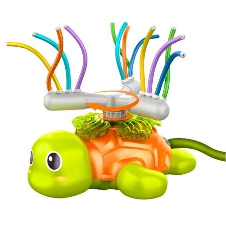 Uroczy design: zraszacz swoją formą przypomina żółwika, co z pewnością przyciągnie wzrok niejednej osoby. Figurka wyposażona jest w wystające rurki na samej górze, które sprawiają, że woda tryska we wszystkie strony.