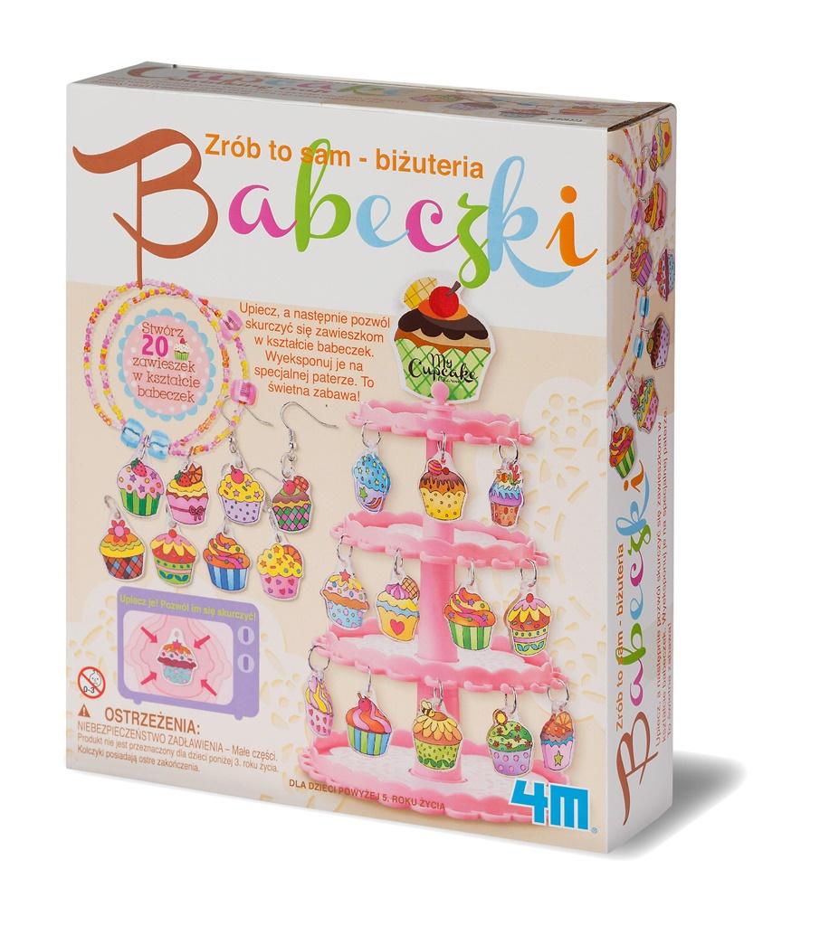 Upiecz, a następnie pozwól skurczyć się zawieszkom w kształcie babeczek. Wyeksponuj je na specjalnej paterze. To świetna zabawa!