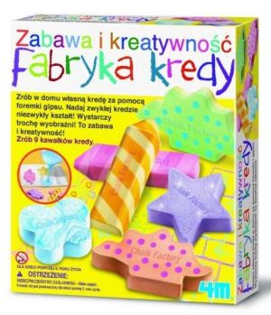 Stwórz swoją własną fabrykę kredy w domu. Wystarczą jedynie tynk i forma do tworzenia niezwykłych kształtów!Odmień zwykłą, nudną kredę w niebanalne narzędzie o wyjątkowym kształcie. Z odrobiną Twojej wyobraźni stworzysz ciekawe dzieła sztuki, którymi zaskoczysz swoich znajomych!To nie koniec zabawy. Kiedy już stworzysz swoją kolorową i kształtną kredę, będziesz ją mógł potem wykorzystać w dowolnym projekcie artystycznym!Uwagi: Powyżej 5. roku życia.Zawartość: 3 woreczki gipsu, 1 forma, 3 tubki farb, 1 woreczek z brokatem, 1 mieszadło, 1 pędzel, 2 kredy do wykonywania kolorowej kredy, szczegółowe instrukcje. Zawartość wystarcza na zrobienie 9 sztuk kredy.