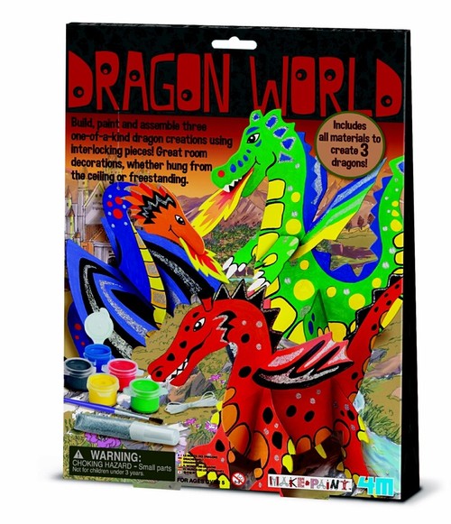 Zestaw do samodzielnego wykonania TRZECH SMOKÓW. Złóż i pomaluj 3 tekturowe, wyjątkowe smoki. Stwórz z nich bajkowy świat na swojej półce! Smoki stanowią wspaniałą dekorację w pokoju, niezależnie od tego czy zostaną przymocone do sufitu (latające i ziejęce ogniem) czy spokojnie stojące na półce. Witaj w świecie smoków. Stwórz jednego w swoim rodzaju smoka dzięki odpowiedniemu dopasowaniu tekturowych części. Pokoloruj go na swój ulubiony kolor, a skrzydła udekoruj farbką brokatową. Zabawa z zestawem ""Zrób to sam"" to zabawa dla całej rodziny!