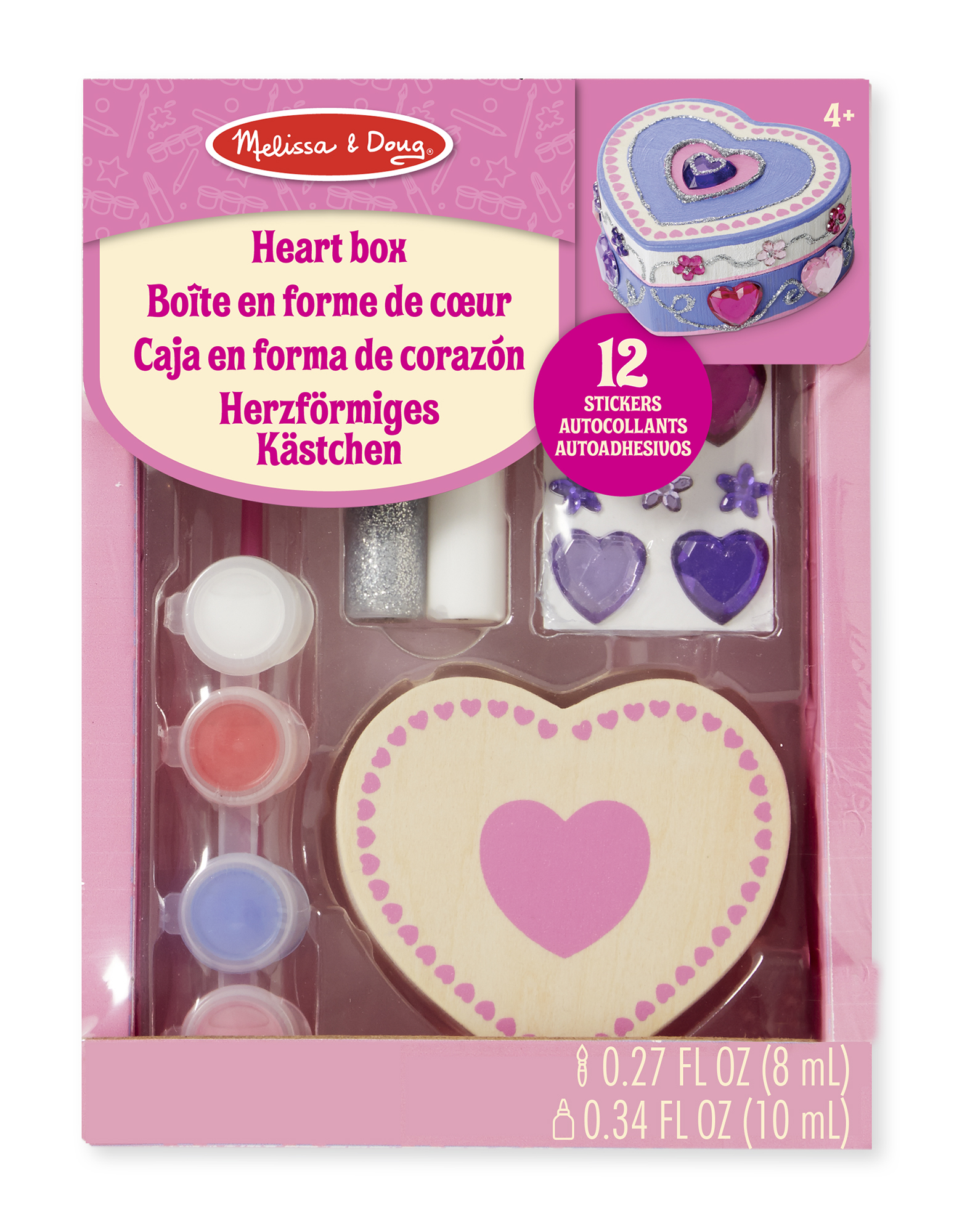 Pudełeczko do samodzielnego przyozdobienia. Wyzwanie dla małej projektantki. Można puścić wodze fantazji i zrobić własne pudełko na skarby. Przyozdobić zawartymi w zestawie serduszkami i innymi naklejkami, oraz pomalować farbkami. Produkt dopuszczony do obrotu w UE zgodnie z posiadanym certyfikatem CE oraz zgodnością z normą EN-71. Dla dzieci w wieku od 4 lat