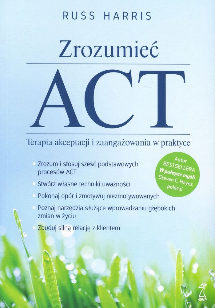 Każdy z nas doświadcza frustracji, rozczarowania, odrzucenia, straty i porażki. Na nowo przeżywa nieprzyjemne wspomnienia, zamartwia się, cierpi z powodu niepokoju, poczucia winy, smutku, bezradności czy zazdrości. Jak wyzwolić się spod negatywnego wpływu bolesnych myśli i emocji? Co zrobić, żeby nasze życie wyglądało tak, jak tego pragniemy? Z pomocą przychodzi nam terapia akceptacji i zaangażowania, podejście oparte na wynikach rzetelnych badań naukowych i należące do nurtu trzeciej fali terapii poznawczo-behawioralnych. Celem ACT jest zwiększenie elastyczności psychologicznej, czyli umiejętności bycia w pełni obecnym „tu i teraz”, z pełną świadomością i otwartością na własne myśli, emocje, doznania, a także działania zgodnie z własnymi wartościami. Im lepiej rozwinięta jest ta umiejętność, tym lepszą jakość ma nasze życie, ponieważ potrafimy nadać mu znaczenie i sens oraz dużo efektywniej reagować na problemy i wyzwania. Russ Harris w przystępny sposób omawia podstawowe procesy ACT, stosowane w jej ramach techniki oraz przebieg sesji. Wszystko bogato ilustruje przykładami i opisami przypadków, co pomaga zrozumieć zastosowanie poszczególnych metod w praktyce. W książce znajdziemy także zestaw przydatnych materiałów, takich jak formularze, karty pracy, przykładowe metafory, oraz wskazówki dotyczące dostosowywania technik i ćwiczeń do potrzeb terapeuty, trenera czy coacha. Ta książka to nieocenione źródło rzetelnej wiedzy. Skierowana jest do szerokiego grona odbiorców – od praktyków początkujących do tych bardziej doświadczonych, którzy chcą udoskonalić swoje umiejętności. Dzięki niej złożona teoria i praktyka ACT stają się przystępne i zrozumiałe. Russ Harris posiada wspaniałą umiejętność tropienia niepotrzebnych komplikacji i przedstawiania złożonych zagadnień w przystępny sposób. […] W tej książce dzięki swym talentom klarownie opisał model ACT, a dzięki swej klinicznej kreatywności zaproponował nowe metody docierania wraz z klientami do sedna poszczególnych procesów. dr Steven C. Hayes współtwórca ACT, autor W pułapce myśli