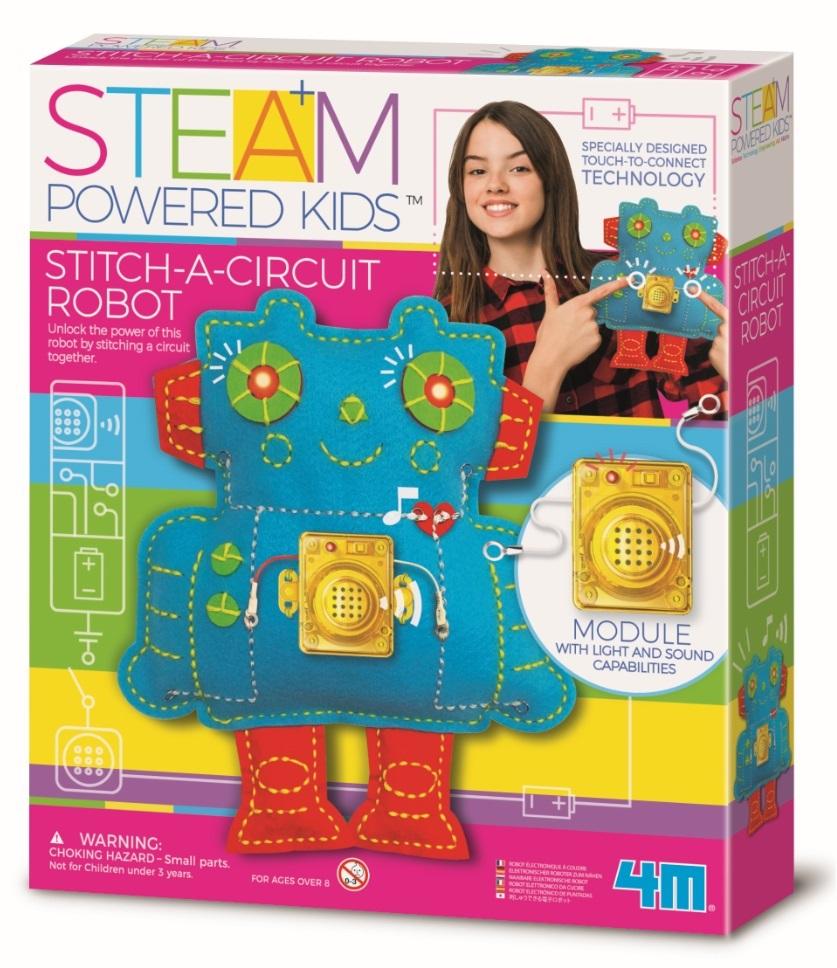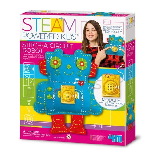 Zobacz jak połączyć prace ręczne z nauką i odblokuj moc robota za pomocą igły i nitki! Zestaw pozwala na stworzenie filcowego robota, którego obwód zostanie zamknięty za pomocą specjalnej metalizowanej nici. To super zabawa i nauka w jednym! Zestawy STEAM to wspaniałe narzędzie do wprowadzenia dzieci w świat inżynierii. Dziewczynki i chłopcy mogą podążać za prostą instrukcją i złożyć swoje własne zabawki naukowe. To rozwijająca zabawa- dziecko uczy się czytać instrukcje i tworzyć konstrukcje, rozwija sprawność manualną. Ciekawostki naukowe pomogą lepiej zrozumieć świat fizyki i mechaniki, co przyda się nie tylko w szkole. W zestawie: - wycięte kształty filcowe - moduł LED ze światłem i dźwiękiem - szpula nici przewodzącej prąd - 2 szpule nici do haftu - 2 plastikowe igły - 6 metalowych pierścieni - wypełnienie - instrukcja Dodatkowo wymagane: - nożyczki - taśma Wiek: 8+