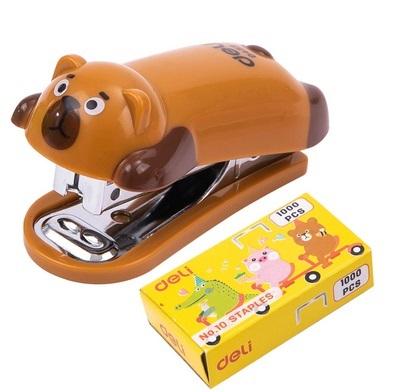 Zszywacz do 15 kartek zszywki 10 miś brązowy DELI