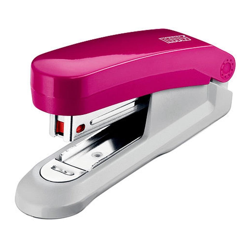 Lekki, kompaktowy zszywacz Novus E15. Urządzenie wykonane z metalu w obudowie z tworzywa sztucznego. Posiada zintegrowany metalowy rozszywacz. Umożliwia zszycie permanentne i tapicerskie. System ładowania zszywek od góry. Waga zszywacza to zaledwie 86 g! Maksymalna głębokość wsuwania kartki to 37 mm. Kolor różowy. Dołączone 200 zszywek No.10.