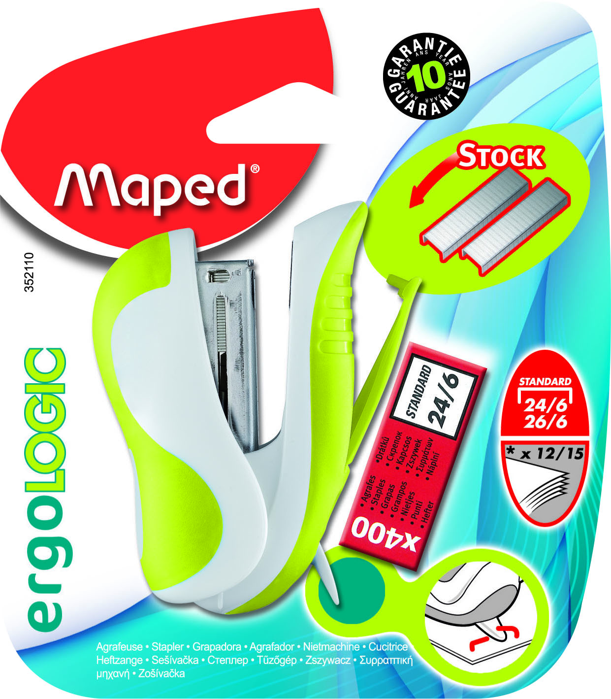 Opakowanie Zszywacz Maped Ergologic mini 15 kartek zielony+400 X 24/6 blister