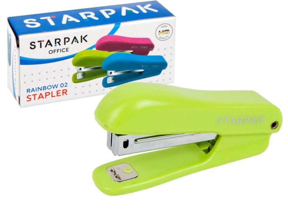 Zszywacz z kolekcji Starpak dedykowanej dla szkoły i biura. Kieszonkowy zszywacz o nowoczesnym designie. Zszywa jednorazowo do 10 kartek gramatury 80 g/m2. Do zszywacza należy stosować zszywki No. 10. Magazynek mieści 50 zszywek. Głębokość zszywania - 40 mm. Zapoznaj się również z innymi produktami Starpak dedykowanymi dla szkoły i biura! Produkt nieodpowiedni dla dzieci poniżej 3 roku życia. Pakowany w kartonowe pudełeczko. Wykonany z metalu oraz plastiku. W kolorze zielonym.