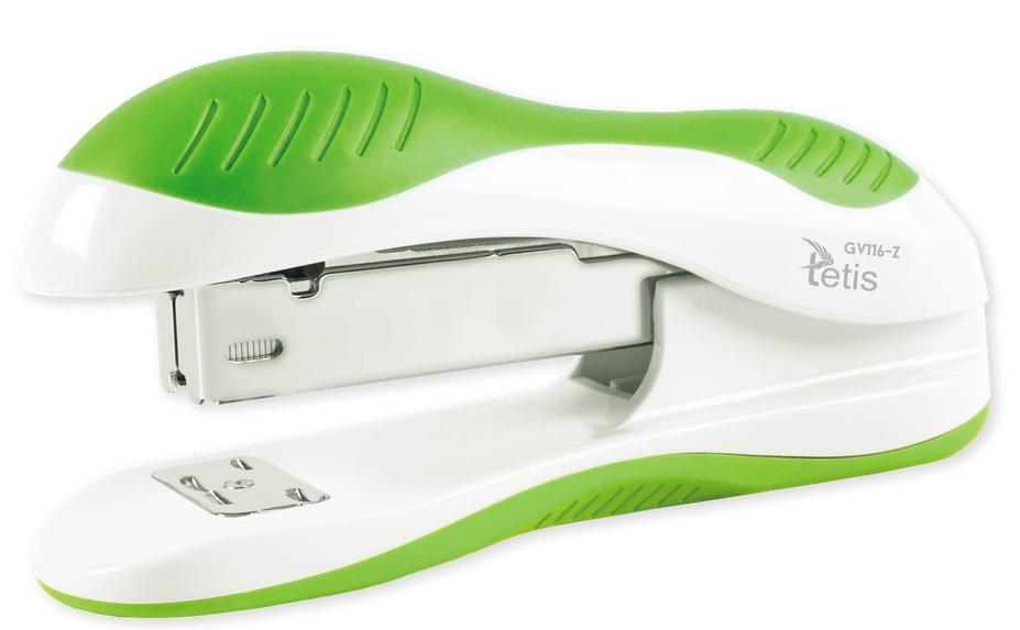 Zszywacz w obudowie z tworzywa sztucznego, części mechaniczne metalowe. Zszywanie otwarte/zamknięte. Dostosowany do zszywek: 24/6-26/6 mm. Zszywa 25 kartek. Głebokość wsuwania kartek: 50 mm. pojemność magazynka 100 zszywek. Opakowanie: pudełko