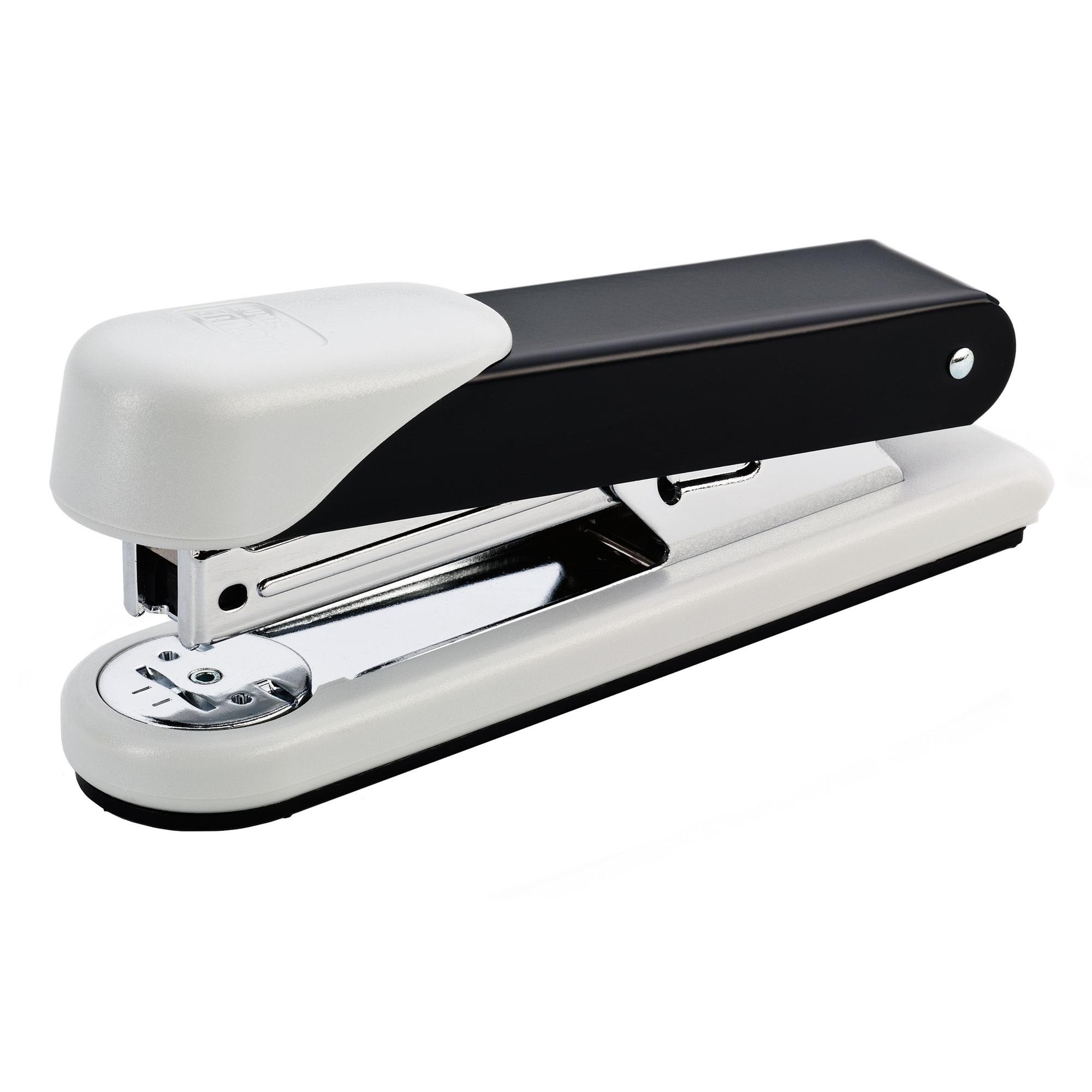 Rewelacyjny zszywacz Novus Stabil do codziennego użytku. Wykonany w całości z metalu, posiadający gumowe miękkie zakończenie do komfortowego zszywania. Umożliwia zszycie permanentne, czasowe i tapicerskie dzięki obrotowej matrycy. System ładowania zszywek od góry. Magazynek na zszywki 24/6 i 26/6. Maksymalna głębokość wsuwania kartki 65 mm. Kolor czarny. Posiada certyfikat TUV NORD GS.
