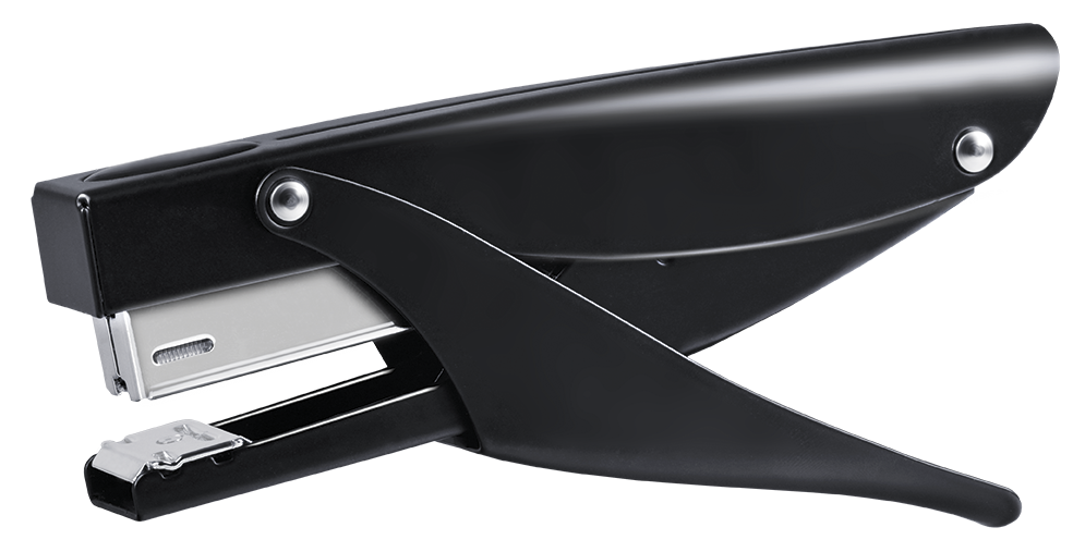 Zszywacz metalowy nożycowy, części mechaniczne metalowe. Zszywanie zamknięte i otwarte. Dostosowany do zszywek o rozmiarach 24/6 - 26/6 mm. Zszywa do 25 kartek. Głębokość wsuwania kartek: 45 mm. Pojemność magazynka:150 zszywek. Kolor: czarny. Opakowanie: pudełko
