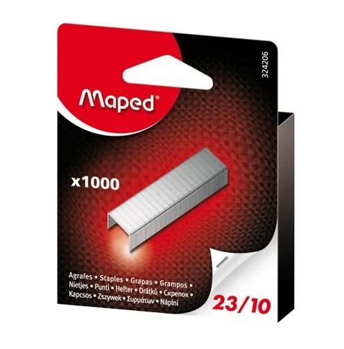 Zszywki Maped 23/10 1000 szt pudełko z zawieszką. Zszywki wykonane z wysokiej jakości galwanizowanej stali. Charakteryzują się duża twardością i odpornością na rozciąganie. Zaostrzone końce zapobiegają zginaniu i łatwo przebijają zszywany plik.