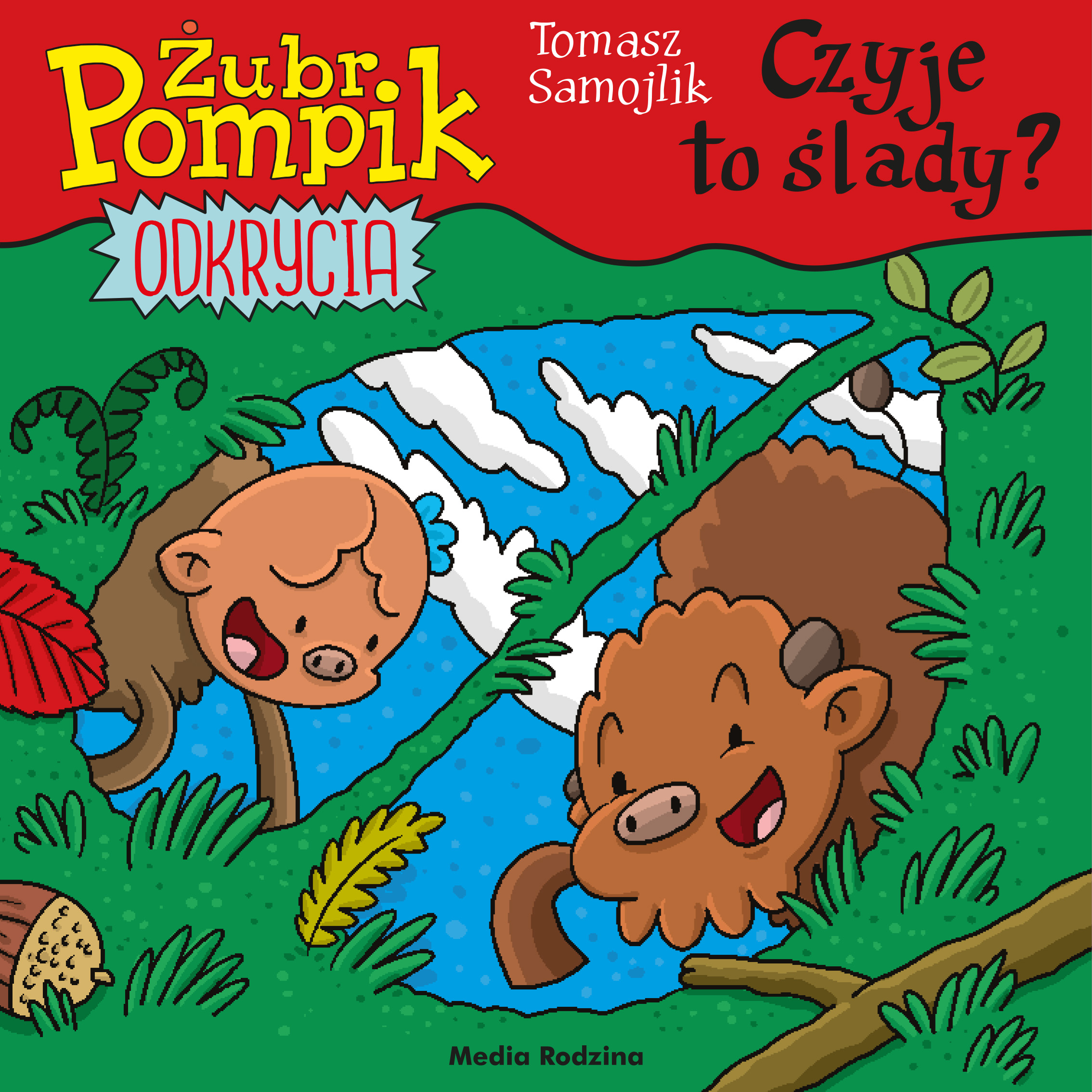 Pompik uwielbia zabawę w chowanego, bo kiedy kryje się przed Polinką w kolejnych wymyślnych miejscach, ma okazję do spokojnych przyrodniczych obserwacji. Sęk w tym, że jego siostra odnajduje go błyskawicznie! Okazuje się, że Polinka potrafi wytropić Pompika po śladach jego racic. Pompik jest pod wrażeniem - w lesie jest przecież mnóstwo różnych śladów. Oba żuberki postanawiają sprawdzić, kto zostawia te wszystkie tropy