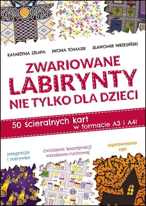 Zwariowane labirynty nie tylko dla dzieci to interaktywna publikacja pomocna w rozwoju percepcji wzrokowej, koordynacji wzrokowo-ruchowej, orientacji przestrzennej, koncentracji i w usprawnianiu ręki. Labirynty przeznaczone są zarówno dla dzieci (od 5. roku życia), jak i młodzieży oraz lubiących wyzwania dorosłych. Publikacja składa się z 50 labiryntów o różnorodnej tematyce i różnym stopniu trudności, a każdy z nich to prawdziwa przygoda: ucieczka przed wampirami, zabawa w chemika, pogoń za złodziejami czy spacerek po Nowym Jorku. Wszystkie labirynty zostały wydrukowane na kartach laminowanych, co umożliwia rozwiązywanie ich za pomocą flamastra, którego ślad można w każdej chwili zetrzeć i zacząć zabawę od nowa!
