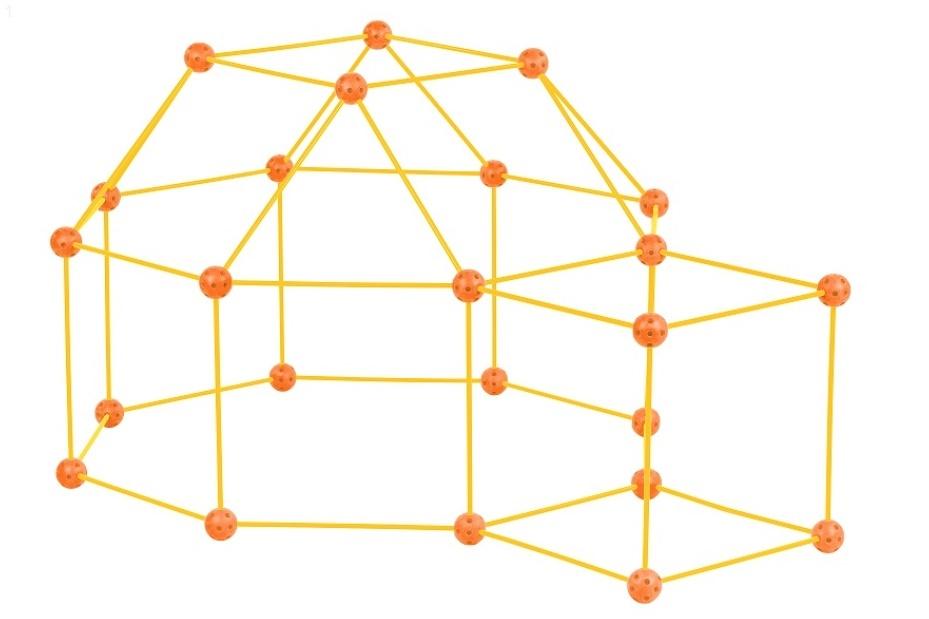 Zabawka konstrukcyjna z której można w łatwy i szybki sposób budować duże, wytrzymałe, łatwe do przenoszenia, świetne w zabawie kompozycje jak domek, zamek, wieża, tunel, które można przykryć kocem lub innym materiałem. Konstrukcje są tak duże, że dzieci mogą się w nich bawić. Zestaw zawiera 72 wysokiej jakości elementy - 27 kul (łączników) i 45 patyków - które w łatwy i intuicyjny sposób łączy się. Zabawka rozwija umiejętności wizualno-przestrzenne, inżynierskie, projektowania, kreatywność.
