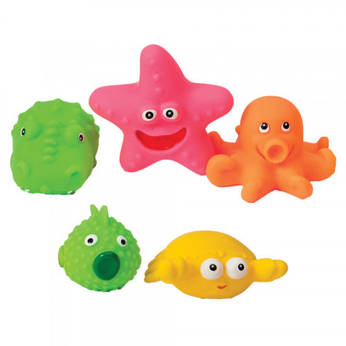 Bezpieczne zabawki do kąpieli, które produkujemy od 40 lat nadal cieszą się ogromnym zainteresowaniem z Waszej strony. Posiadają wyraziste kolory i ciekawe wzory, które zachęcają dzieci do zabawy. Dzięki urozmaiconym kształtom i wypustkom stymulują zmysł dotyku. Dodatkowo delikatny dźwięk rozwija zmysł słuchu u maluchów. Poprzez zabawę piszczkami dzieci mogą uczyć się nazw zwierząt.