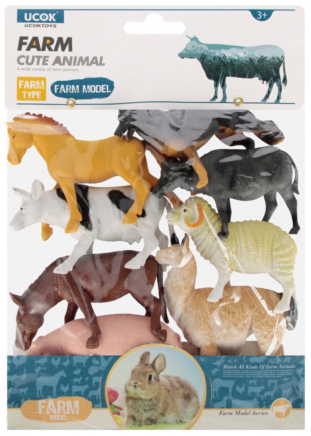 Zawartość zestawu Bawół, Krowa, Lama, Baran, Pies, Świnia, 2x Konie.