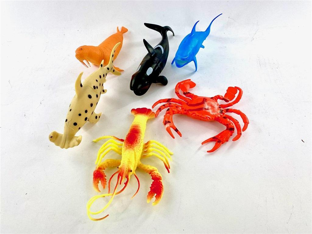 Zwierzęta morskie duże, takie jak np . delfin, rekin, rak pakowane po 6 sztuk .