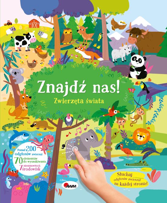 Książka zabiera małych czytelników w niezapomnianą PODRÓŻ DOOKOŁA ŚWIATA. Dzieci znajdą w niej krótkie OPISY ZWIERZĄT żyjących w różnych środowiskach, m.in. na wsi, w dżungli, na sawannie czy w oceanie. Wyróżnikiem publikacji jest ponad 200 DŹWIĘKÓW. Dzięki niej maluch dowie się, jakie odgłosy wydają zwierzęta z całego świata. Książka to również GRA DŹWIĘKOWA, w której dziecko wyszukuje wskazane przez lektorkę zwierzęta. Jest to doskonałe ćwiczenie na SPOSTRZEGAWCZOŚĆ.