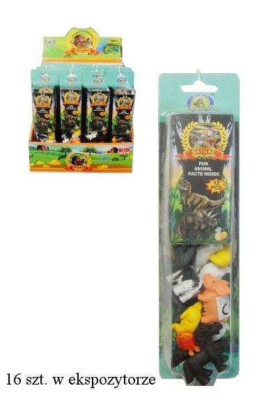 Zestaw 12 figurek zwierząt hodowlanych. M.in.: świnia, owca, osioł, koń, krowa. Każde zwierzątko występuje podwójnie. Produkt występuje w kilku wersjach, wybierany losowo. Cena dotyczy jednje sztuki. Figurki zapakowane w kartonową podstawkę z przezroczystym kloszem. Zestaw przeznaczony dla dzieci od 3 lat. Podane wymiary są wymiarami opakowania.