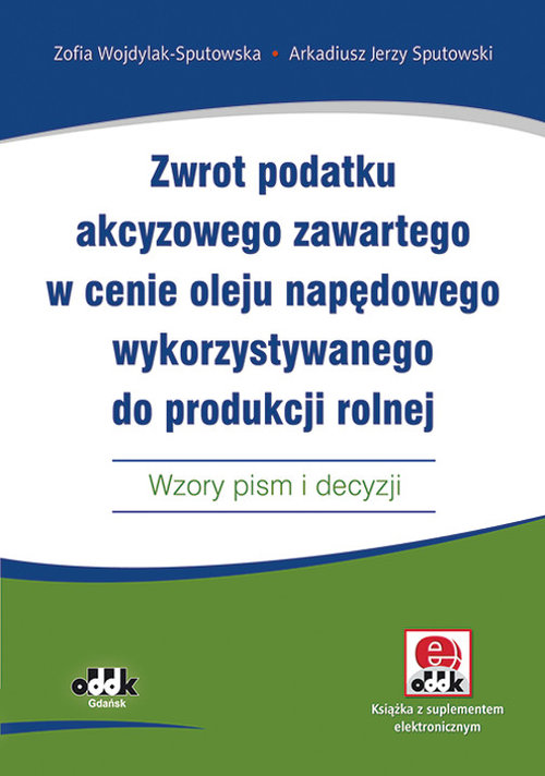 Począwszy od 1 stycznia 2019 r., ustawą z dnia 9 listopada 2018 r. o zmianie ustawy o zwrocie podatku akcyzowego zwartego w cenie oleju napędowego wykorzystywanego do produkcji rolnej (Dz.U. poz. 2247), zmieniły się zasady postępowania w sprawie zwrotu producentom rolnym tego podatku. Dodano kolejne, nowe kryterium zwrotu podatku akcyzowego, tj. kryterium z tytułu posiadania tzw. dużych jednostek przeliczeniowych bydła w gospodarstwie producenta rolnego. To kryterium oraz zmienione wysokości przeliczników, według których organy gmin będą zwracały należności producentom rolnym, spowodowały potrzebę opracowania wzorców dokumentów, jako pomocy dla pracowników, którym powierzono obowiązki w zakresie postępowań administracyjnych związanych ze zwrotem podatku akcyzowego oraz postępowaniami w zakresie odzyskania należności nienależnie lub nadmiernie wypłaconych. Publikacja zawiera komplet wzorcowej dokumentacji – wniosków, postanowień, decyzji i innych pism związanych ze zwrotem podatku akcyzowego producentom rolnym. Czytelnik dowie się z niej m.in.: - jakie oświadczenia powinien złożyć producent rolny; - jak wydać decyzję o zwrocie pobranego nienależnie lub w nadmiernej wysokości zwrotu podatku; - jakie elementy po 1 stycznia 2019 r. powinna zawierać decyzja zwrotowa; - jak skonstruować oświadczenie o zgodzie na przetwarzanie danych osobowych; - jak poprawnie powinna wyglądać karta usługi administracyjnej w zakresie zwrotu podatku akcyzowego zawartego w cenie oleju napędowego. Wszystkie wzory dokumentów zawarto w suplemencie elektronicznym w formacie MS Word, co pozwala na łatwe ich dostosowanie do indywidualnych wymogów i rozwiązań stosowanych w jednostce. Plik suplementu jest do pobrania przez Internet, instrukcję postępowania zamieszczono w książce. Zainstalowanie suplementu wymaga systemu operacyjnego Windows.