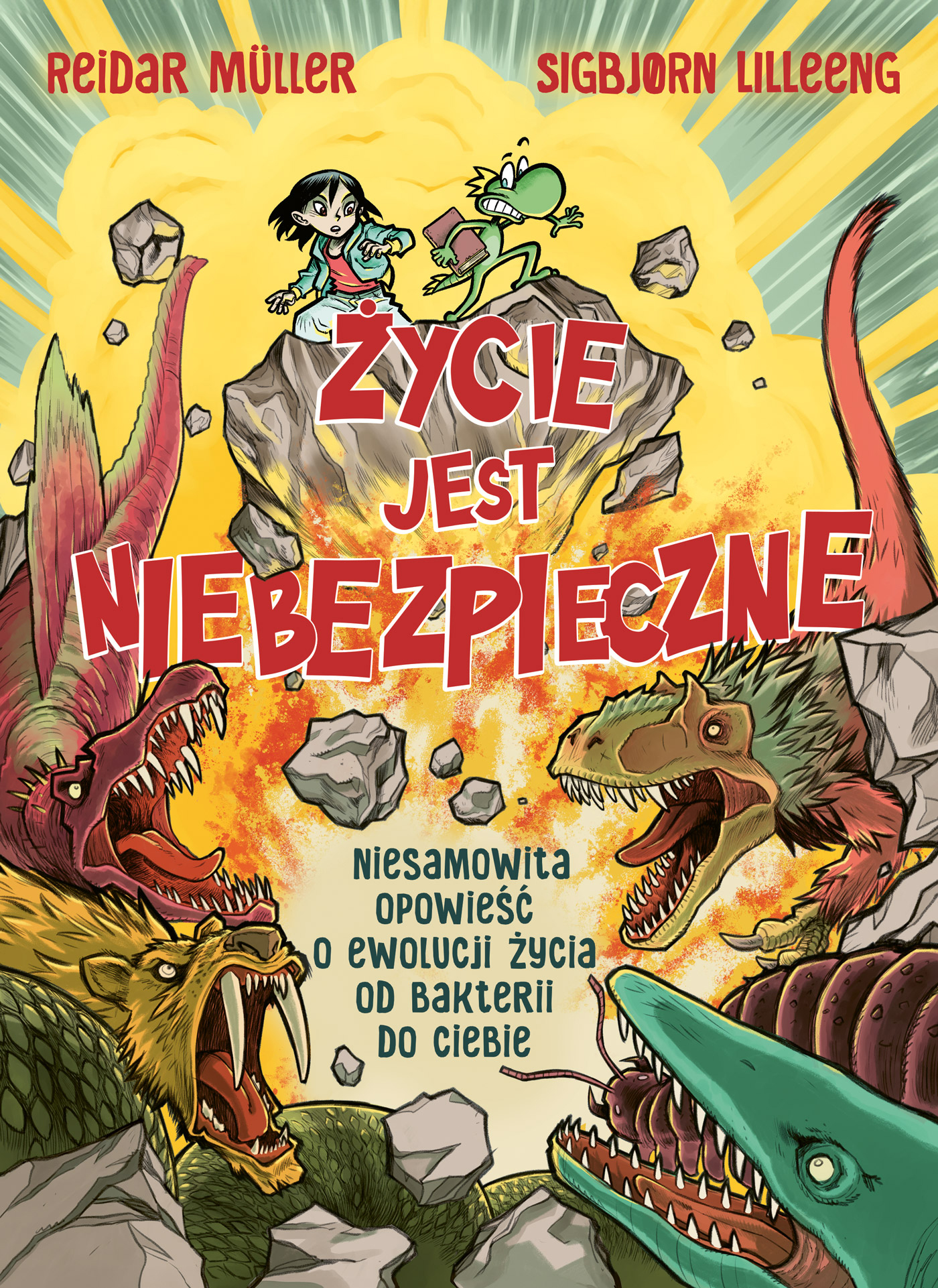 Ta pełna przygód powieść graficzna pokaże ci, że życie jest… fascynująco nieprzewidywalne i bardzo niebezpieczne! Wybierz się w ekscytującą podróż w czasie! Razem z Gają i Iggym spotkasz groźne dinozaury, gigantyczne ważki, wielkie skorpiony, morskie potwory i całe mnóstwo dziwnych stworzeń, które kiedyś naprawdę istniały. A przy okazji odkryjesz niezwykłą historię ewolucji – od maleńkich bakterii aż po… ciebie! Czy wiesz, że twoim przodkiem było mikroskopijne zwierzątko przypominające glutka? Albo dziwaczna ryba? To zadziwiające, że nieprzerwany łańcuch życia prowadzi właśnie do ciebie – choć po drodze tyle rzeczy mogło się nie udać, bo życie to ciągła przygoda i ryzyko! Ta pełna barw, humoru i wiedzy książka zachwyci każdego ciekawego świata czytelnika – niezależnie od wieku.
