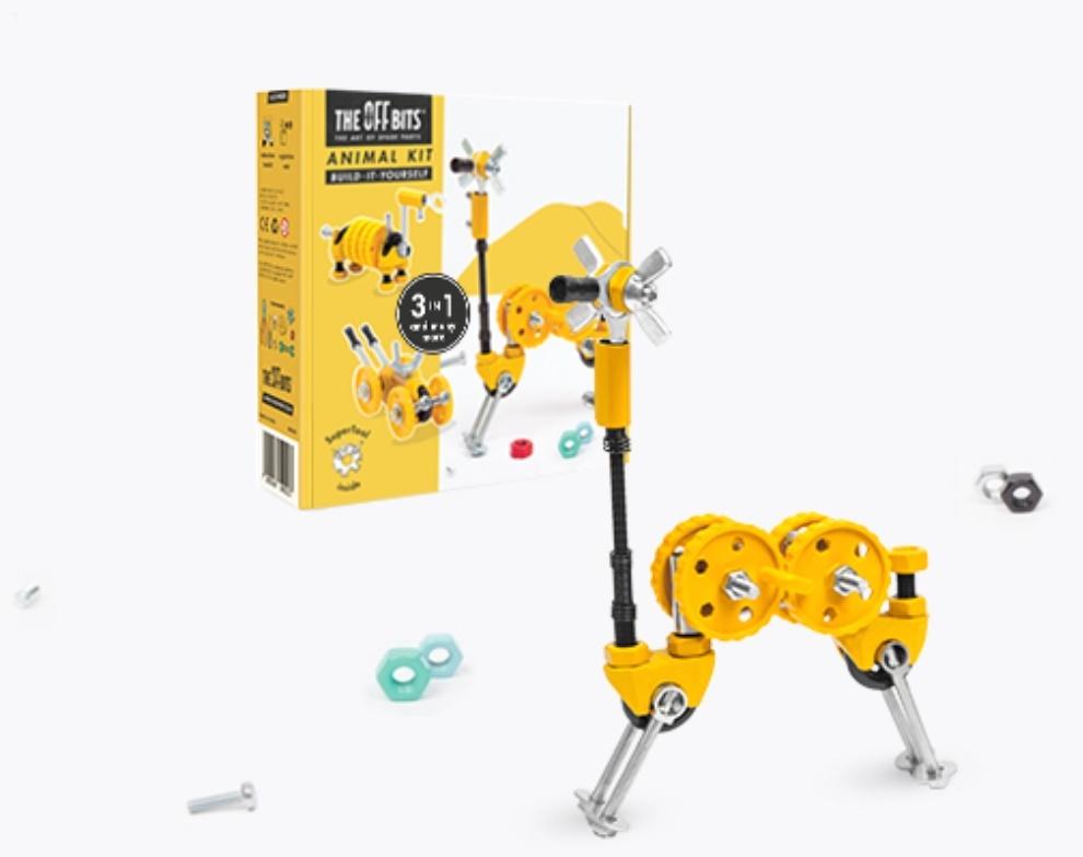 Przygotuj części i zmierz się z wyzwaniem! Zestaw 3-w-1 umożliwia stworzenie co najmniej 3 różnych modeli z instrukcji (żyrafa GiraffeBit, pancernik ArmadilloBit i wyścigówka RaceBit), ale także wiele innych. Ograniczeniem jest tylko wyobraźnia i kreatywność! System zabawek konstrukcyjnych „open-source” OFFBITS® oparto na zestawach do samodzielnego montażu, wykonanych ze specjalnie przygotowanych elementów, wzbogaconych o standardowe części, które można znaleźć w każdym sklepie budowlanym. Zestawy zawierają kolorowe postaci robotów z inspirującymi historiami, jak również niestandardowe pojazdy, zestawy rozszerzeń, dodatkowe narzędzia i akcesoria. Zestawy można dowolnie łączyć ze sobą. Można je też łatwo rozszerzać o dodatkowe części z dowolnej domowej skrzynki narzędziowej. Zestaw postaci zawiera broszurę ze szczegółowymi instrukcjami, narzędzie SuperTool™ i unikatowy kod rejestracyjny do internetowej społeczności twórców, dostępnej na stronie theoffbits.com. Narzędzie SuperTool™ pięć-w-jednym jest zawarte w każdym zestawie i jest dostosowane do standardowych rozmiarów wspólnych dla wszystkich zestawów i części OFFBITS®. OFFBITS® to nowa, ekscytująca firma, wyróżniająca się unikatowym i awangardowym podejściem do zabawek. Zabawki nowej generacji zawierają powszechnie znane elementy. Projektowane są jednak w taki sposób, by pobudzać kreatywność i wyobraźnię niezależnie od wieku.